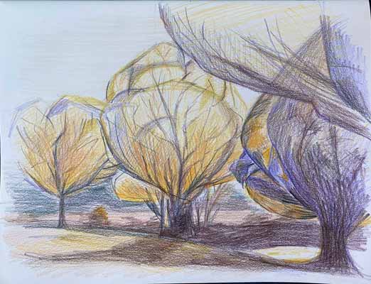 Wrapped trees by ChristoColored pencils on paper