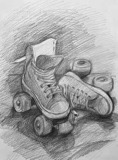 Roller Skates Charcoal pencil on paper