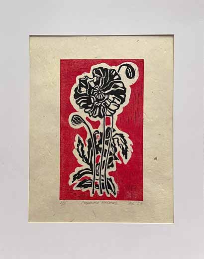 Papavera RhoeasLinocut print on lokta paper