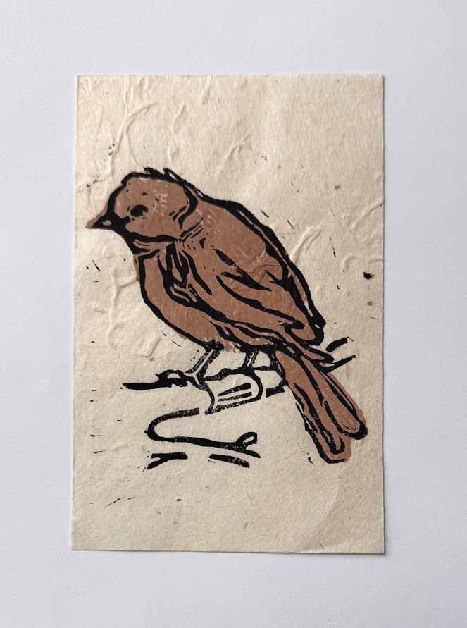 SparrowLinocut print, two colors