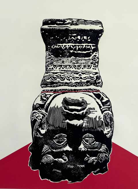 Petrified Medusa IILinocut print/Collage on Rives paper